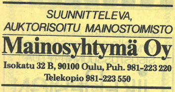 Vuosikymmen oli oululaisten mainostoimistojen kultakautta. Suuret kansalliset toimistot kumppanoituivat (Taucher) oululaisten toimistojen kanssa tai perustivat kaupunkiin omia toimipisteitään (Mainosyhtymä).