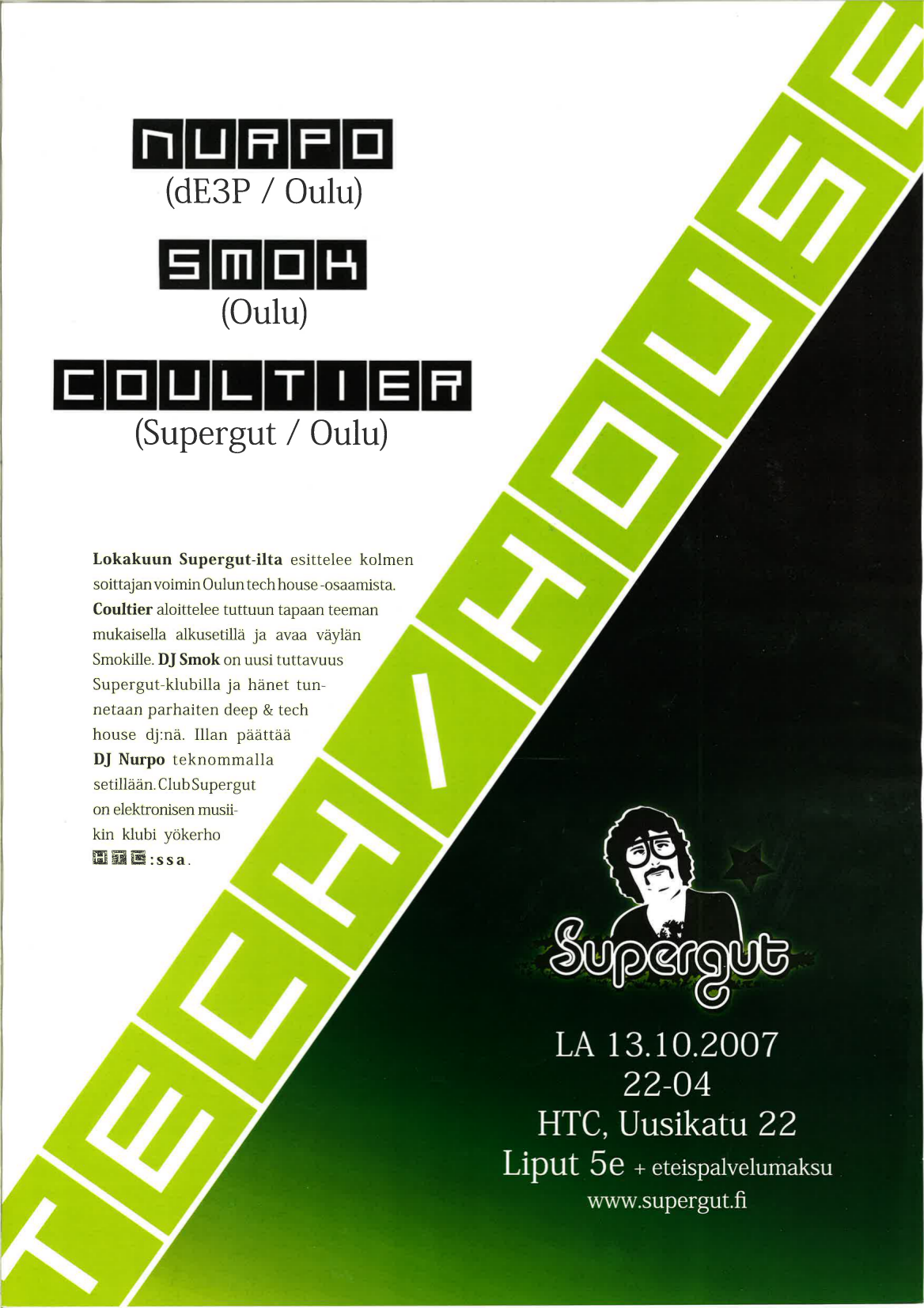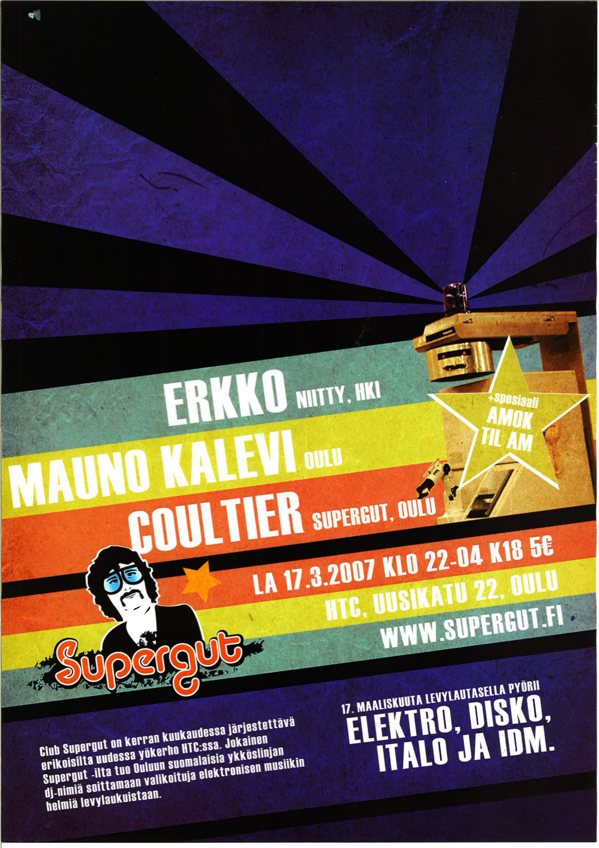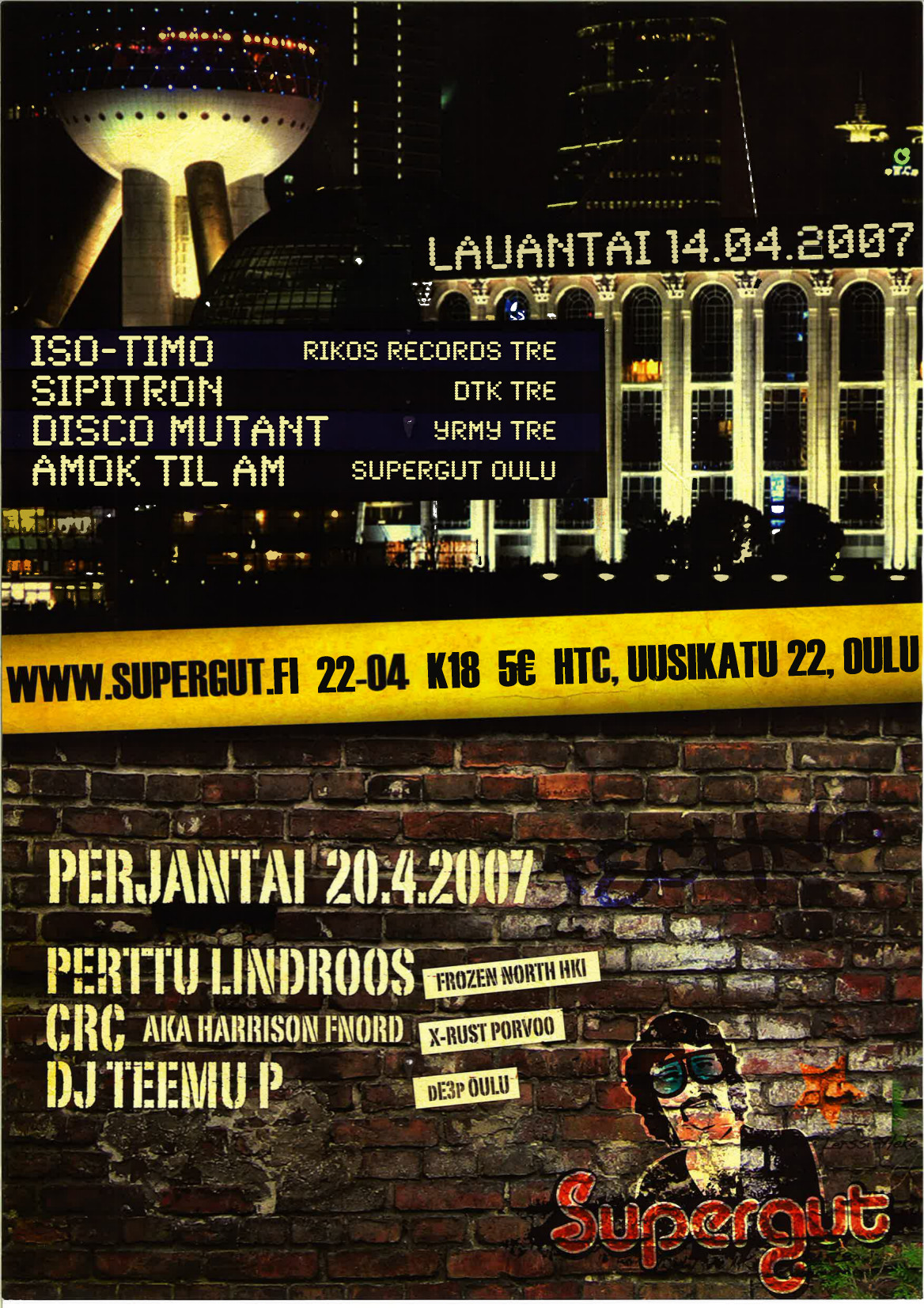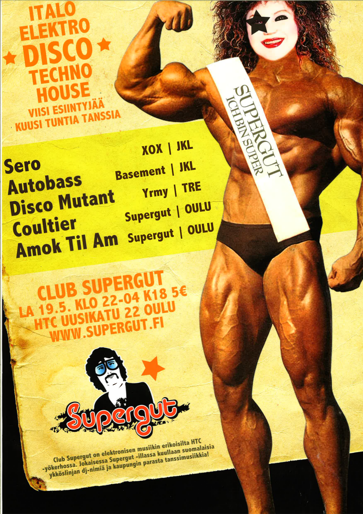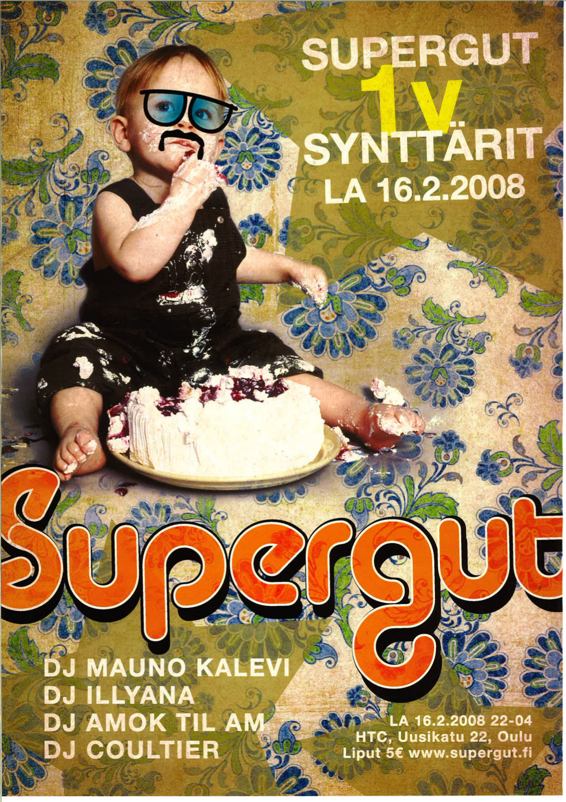 Club Supergut sai alkunsa riikalaisessa yökerhossa loppusyksystä 2006. Ehkä aikaa oli kulunut tarpeeksi tai ideat olivat jalostuneet, mutta nyt visio oli kirkastunut ja vanhat traumat unohtuneet. Maailman – ainakin henkisesti – pohjoisin elektroklubi Club Supergut oli syntynyt. Mukaan lähti hieman freesattu kokoonpano kavereita ja ideaa lähdettiin myymään Oulun yökerhomaailman uudelle tulokkaalle HTC:lle.