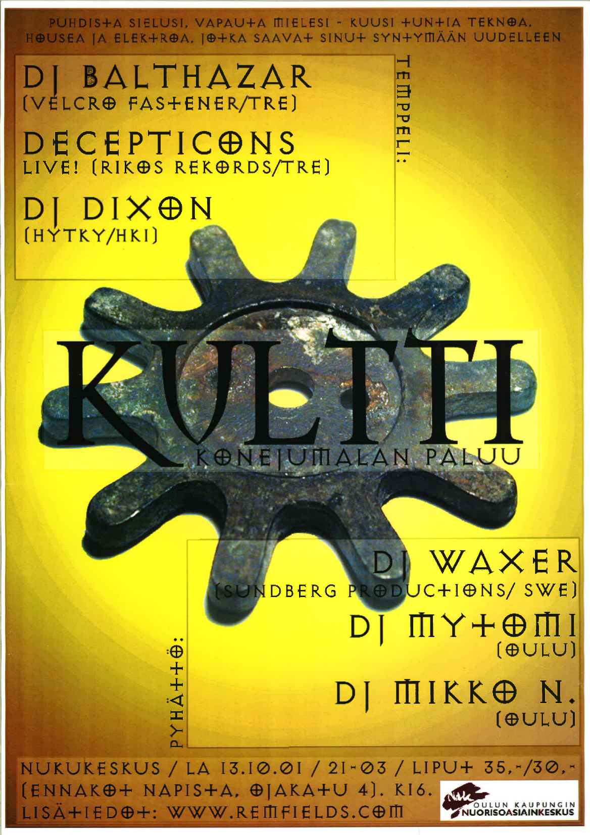 Syksyllä 2001 kokeiltiin vielä kerran, josko aiempien Oulu2002:n ja MIA:n menestys olisi toistettavissa. Ei ollut. Kultti oli floppi ja jos jotain markkoja oli vielä jostain jäänyt niin tähän ne taisivat mennä. Saattoi tosin olla, että tätä tapahtumaa jouduimme myös makselemaan omistamme – varma en tästä ole. Tapahtumasta jäi mieleen, kun tupakkapaikalla äänentoistofirman nuppienvääntelijä puhui puhelimeen jollekin tutulleen ja mainitsi että ”oli paska tapahtuma”, tiedostamatta sitä että järjestäjät olivat kuuloetäisyydellä. Tästä jäi itselleni jonkinlainen ryppy rakkauteen ja säännöllisistä joulukorteista huolimatta lisätilauksia en ko. firmalta enää tehnyt. Osasyy oli toki silläkin, että vastaavan mittakaavan tapahtumia ei enää järjestetty.