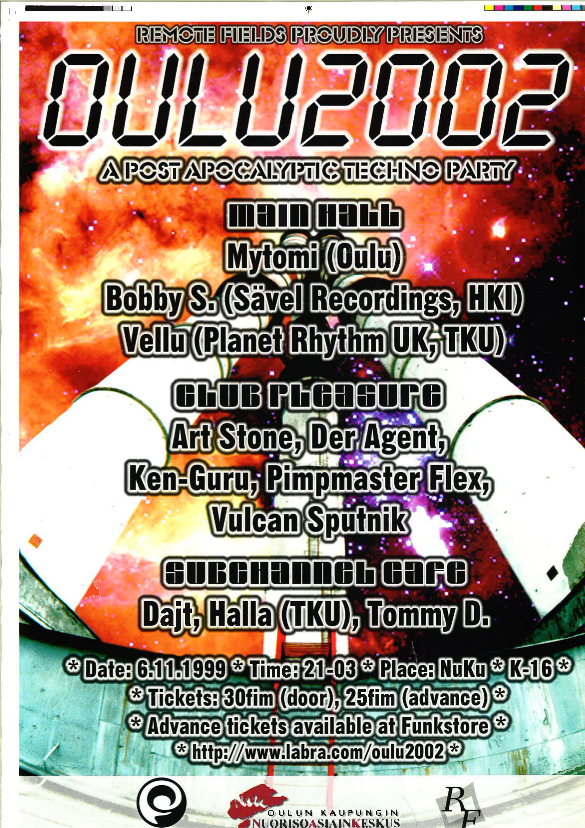 Waldassa bileet olivat menneet putkeen ja itsevarmuus oli kasvanut. Oli aika tehdä jotain isompaa. Rahaa ei ollut, joten hommat puljattiin joko henkilökohtaisella taloudellisella riskillä tai niillä vähillä suhteilla mitä vähän yli kaksikymppisillä silloin oli. Syntyi ajatus toteuttaa iso tapahtuma silloisella Nukulla ja bileiden nimeksi keksittiin Oulu 2002 (lineup). Eli Oulu kaukaisessa kolmen vuoden päässä olevassa tulevaisuudessa. Esimerkkinä tapahtumalle oli (tietysti) Oulun ykköstapahtuma Time Tunnel.