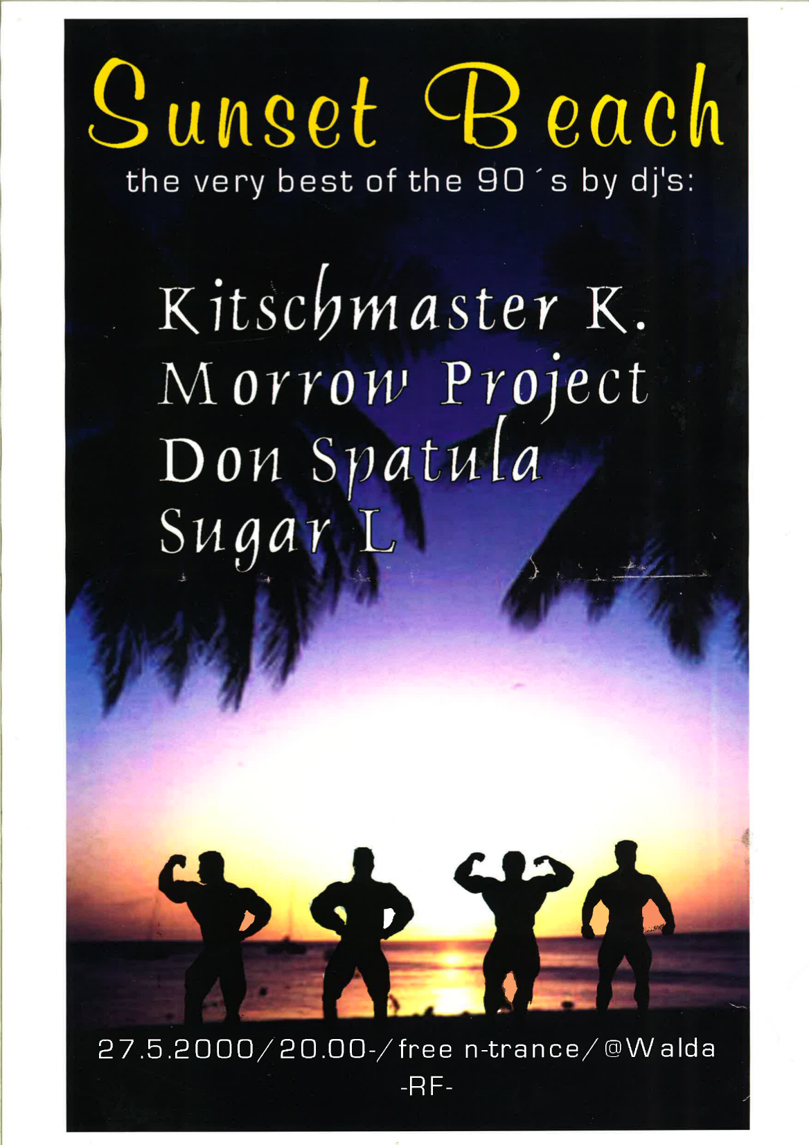 Tapahtumista ensimmäinen oli Elektrokeittiö (lineup). Nimen takana oli mm. se käytännön seikka, että dj-pöytä sijaitsi Waldan keittiön puolella. Puristi-henkeen bileissä myös kokattiin lättyjä keittiössä, joita sitten tarjoiltiin yleisölle. Jatkoa seurasi Elektrokylpyhuone-nimisissä (lineup) bileissä ja olipa meillä myös Sunset Beach -bileet, joissa soitin elämäni ensimmäisiä dj-keikkoja lyhyen ja huonosti miksatun gabber-setin merkeissä. Tässä rakensimme erilaisesta kesäsälästä rantamiljöön dj-pisteen ympärille hiekkarantoineen ja uima-altaineen. Hiekkaa saatiin läheiseltä työmaalta lainaan ja saatettiin se sinne yön kähmässä myös palauttaakin.