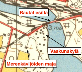 Alueen vieressä sijaitseva Nurron talo, joka oli tuolloin Oulun Merenkävijät ry:n maja, oli vuokrattuna upseerien majoitukseen.