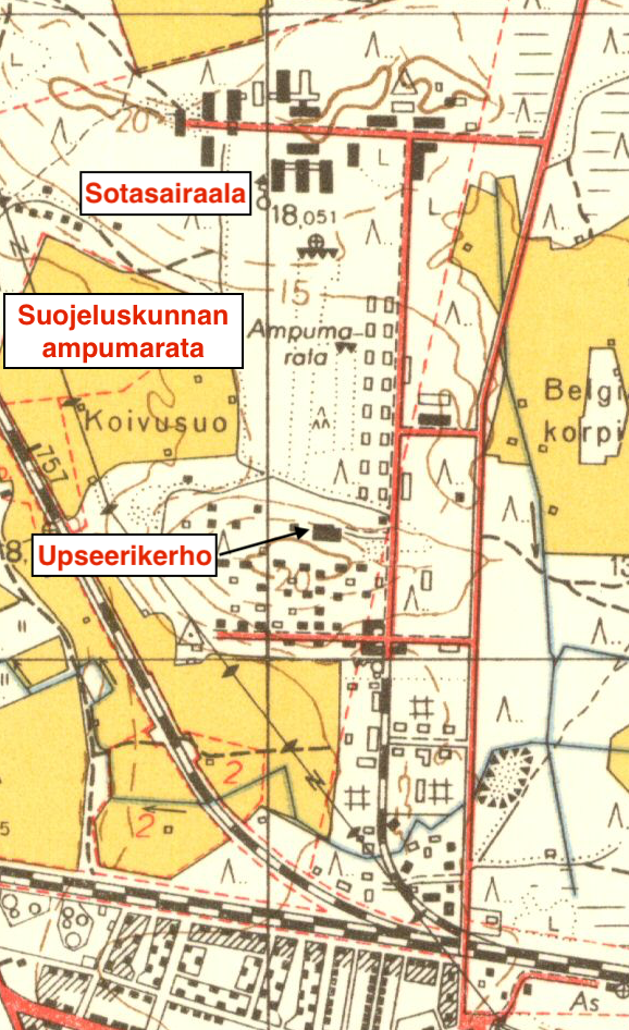• Nyt karttamerkit ja vihreä alue ovat OK. Tässä pieniä tarkennuksia edelliseen kommenttiini. Kun tutkin vuoden 1947 ilmakuvaa, huomasin, että ne Pursutien lähellä ”rakentamatta jääneiden parakkien peruskivien” päällä oli parakit v. 1947, mutta ei enää noin vuonna 1956, jolloin tuo metsä oli Pursutien/Sammaltien lasten leikkipaikka. Pohjan prikaatin killan julkaisemassa artikkelissa ”Jalkaväkirykmentti 1” mainitaan: ”Tälle alueelle oli välirauhan aikana rakennettu ilmatorjuntapatteriston kasarmialue ja suojeluskuntapiirin varastoalue”. Tuon ei tarvitse poissulkea sitä, että saksalaiset käyttivät aluetta ja ehkä rakennuttivat lisää rakennuksia, mainitaanhan niitä olleen hyvin suuri määrä: 74. JR1-historiikissa mainittu pinta-ala ”n. 10 ha” lienee virheellinen, tai sitten v. 1945 käytössä oli vain osa karttaan merkitystä alueesta nro 5.