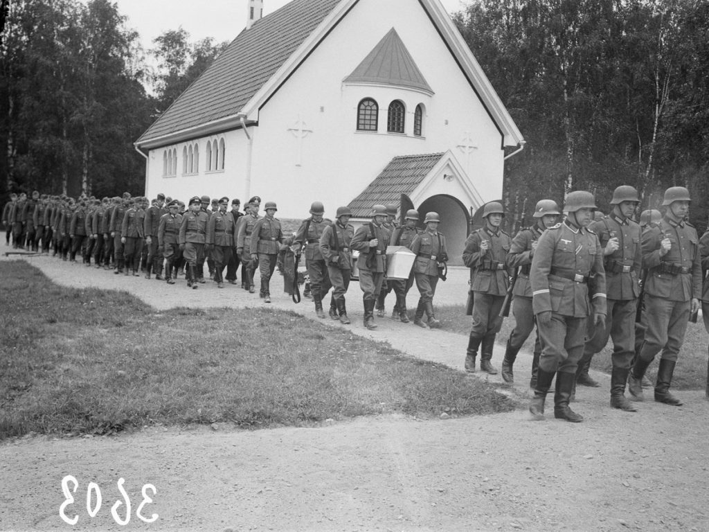 Saksalaisten sotilaiden hautaujaissaatto 25.7.1941 Oulun hautausmaalla. Lähde: Museovirasto – JOKA Journalistinen kuva-arkisto – Kalevan kokoelmat